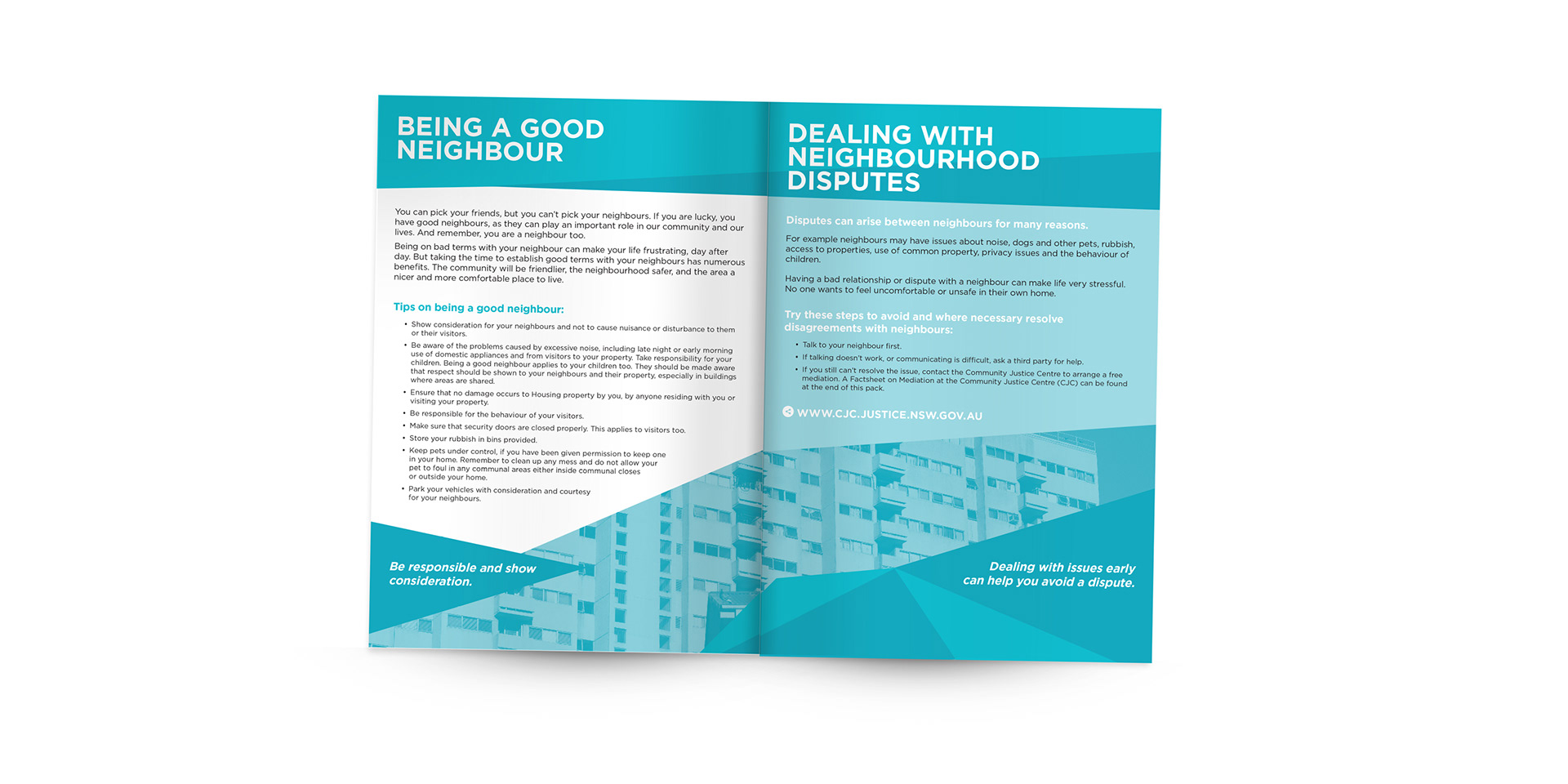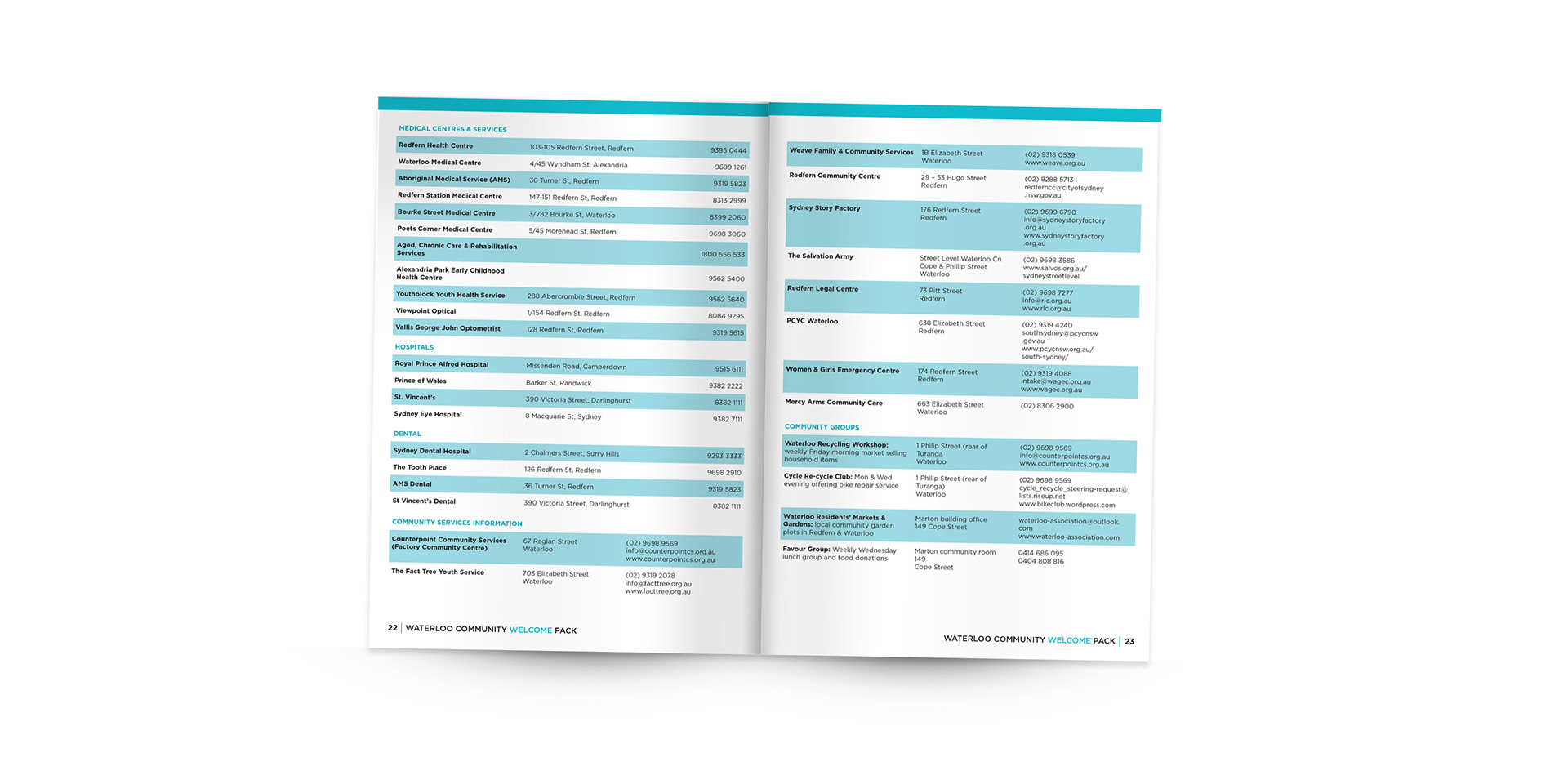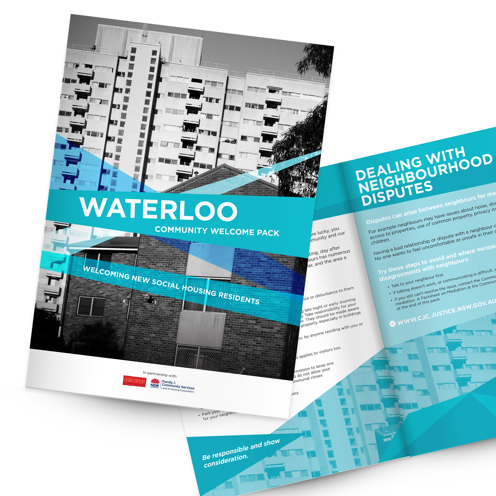 In 2018 I worked with Counterpoint Community Services and the Department of Land and Housing to design and produce this social housing welcome pack for Waterloo.
